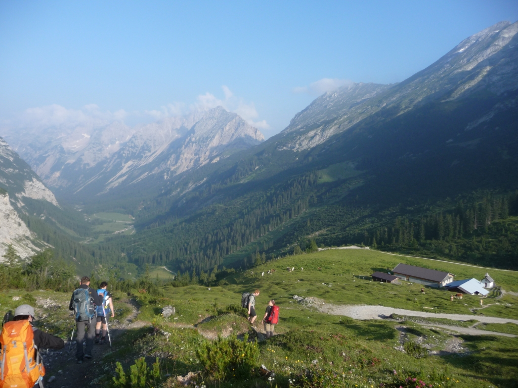 Im Rudel auf nach Scharnitz, da Taxi bis zur Kastelnalm und weiter zum Hallerangerhaus